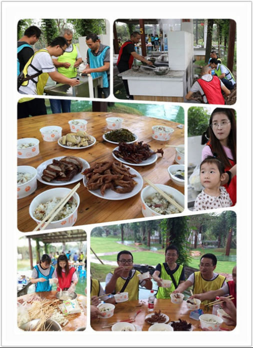 秋天的雨,是一把鑰匙,它帶著清涼和溫柔,輕輕地,輕輕地,趁你沒留意,把秋天的大門打開了。到了中午,本次活動項目“燒烤、野炊”閃亮登場。大家分工明確、互相協(xié)作,各自拿出“十八般武藝”,在炊煙裊裊中烤制出今秋第一口“野味”,充分享受自己動手、豐衣足食的樂趣。