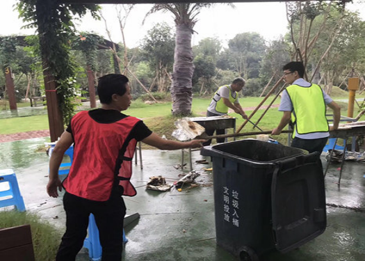享受美食的同時,大家也沒有忘記愛護(hù)環(huán)境,主動將垃圾清理回收。