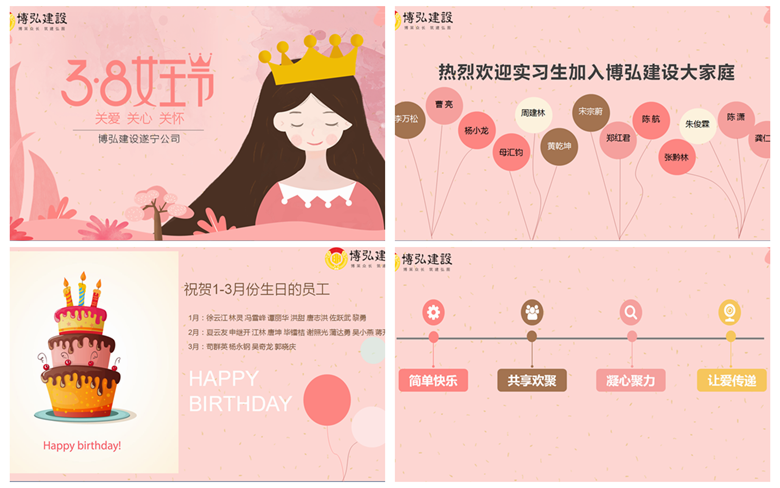 三月,乍暖還寒中,陽光一天天明媚起來,隨處彌漫著濃濃的春意,在這生機盎然的時節(jié)里,三·八女神節(jié)如約而至,為感謝大家的的辛勤付出,共慶節(jié)日,博弘建設遂寧公司開展了主題為“簡單快樂,共享歡聚,凝心聚力,讓愛傳遞”的全員歡聚活動。本次活動主要圍繞著“三八女神節(jié)”、“實習生迎新會”、“第一季度生日會”三大主題展開,各個環(huán)節(jié)都給...